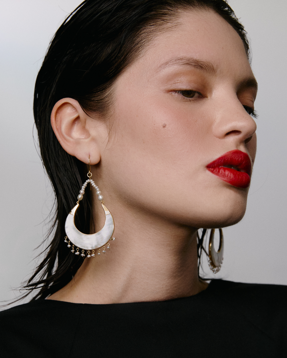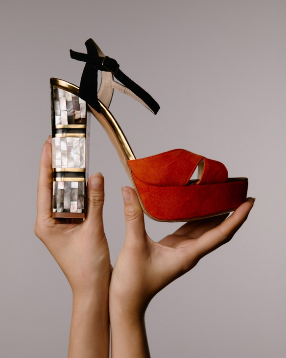 Every pair of luxurious Freya Rose designer women's shoes and unique piece of designer jewellery is intricately handcrafted by artisan jewellers. Our signature Mother of Pearl designs reimagine ancestral indigenous techniques into contemporary wearable works of art.