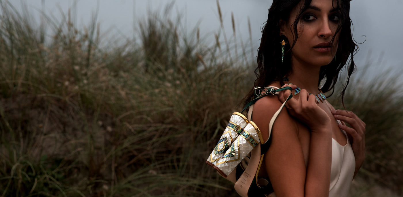 Every pair of luxurious Freya Rose designer women's shoes and unique piece of designer jewellery is intricately handcrafted by artisan jewellers. Our signature Mother of Pearl designs reimagine ancestral indigenous techniques into contemporary wearable works of art.